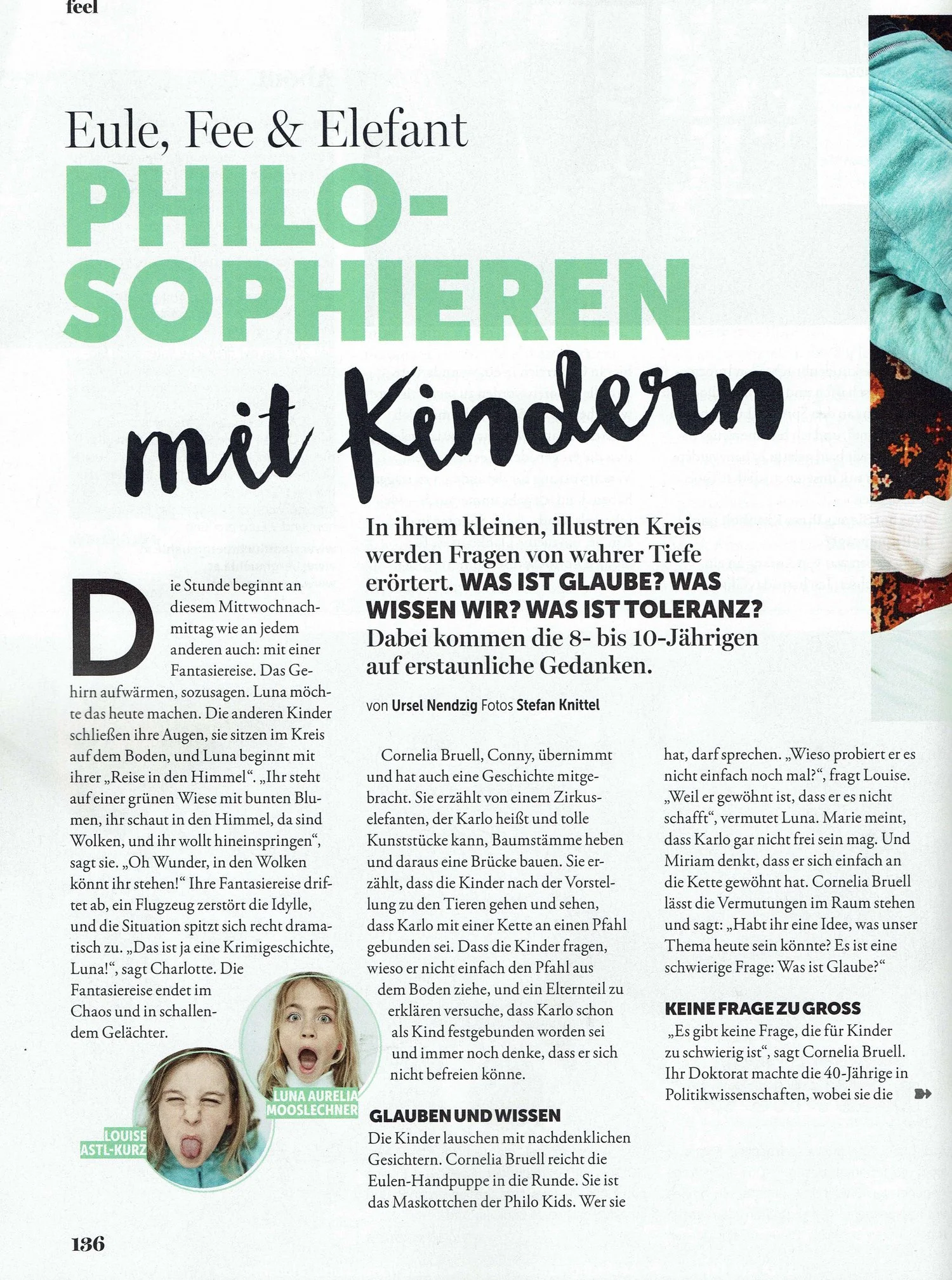 Philosophieren mit Kindern im mosaik, "Philosophin diskutiert existenzielle Fragen mit Kindern", in: mosaik, Das regionale Familienmagazin, Ausgabe 01, Oktober 2016.